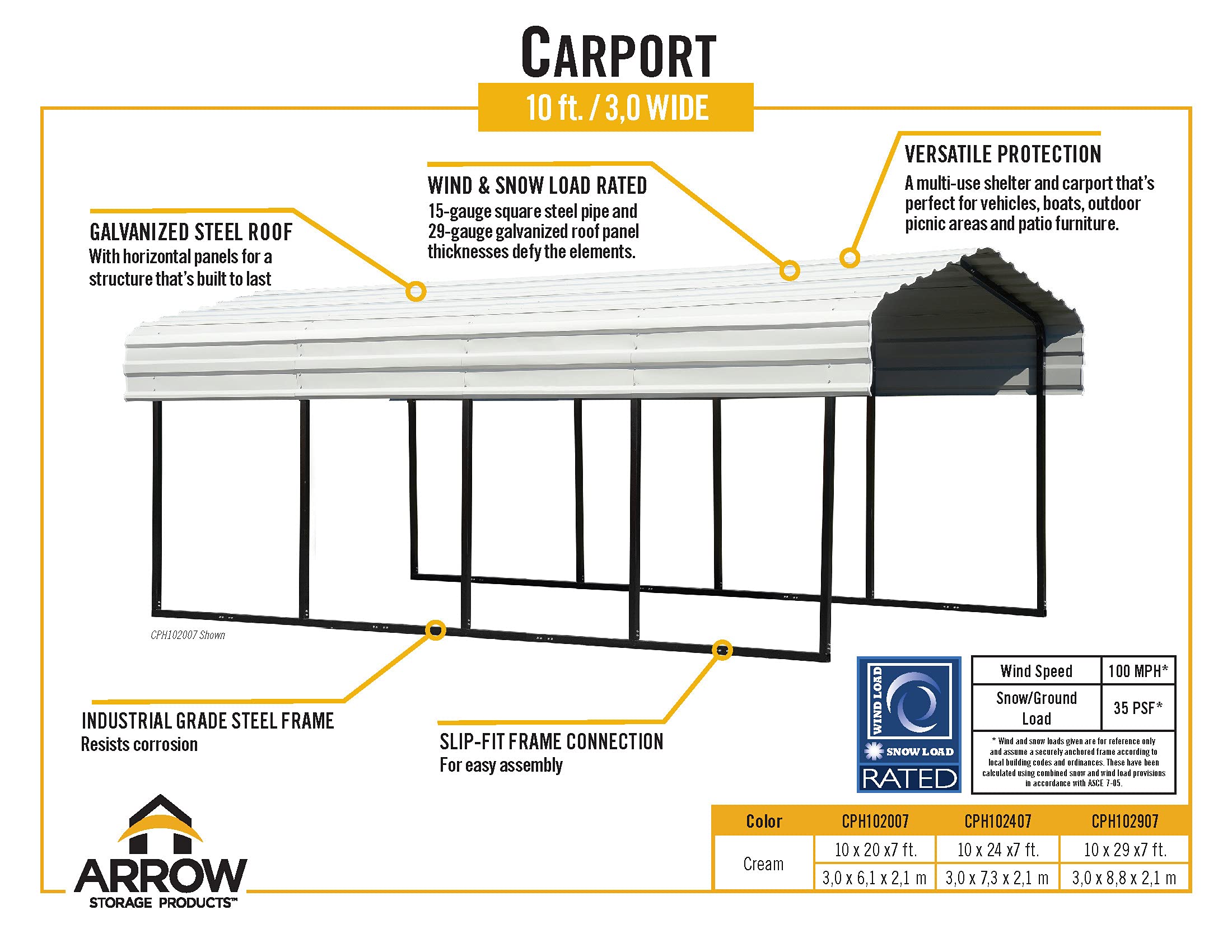 Carport from Arrow is a newly re-designed Carport and multi-use shelter that is wind and snow rated for maximum protection against the elementsFREE Fast Shipping. Tube frame made to reinforce. Includes door panels for both front and back.